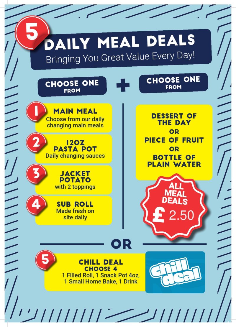 Our Chill Deal is a great-value cold meal option. Simply choose four chilled items marked with the Chill Deal logo for one set price. Pick from favourites likes rolls, yogurts, fruit pots and small home bakes – ideal for busy days